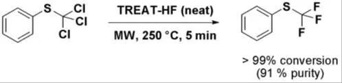 方案1:Monowave 400中進(jìn)行(三氯甲基硫基)苯氟化