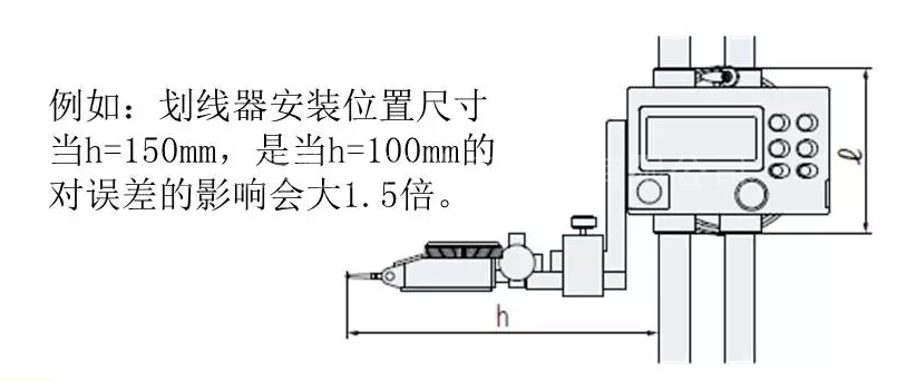 當(dāng)劃線器接觸被測物后,如果用力過大會導(dǎo)致底座上翹,產(chǎn)生較大的誤差。