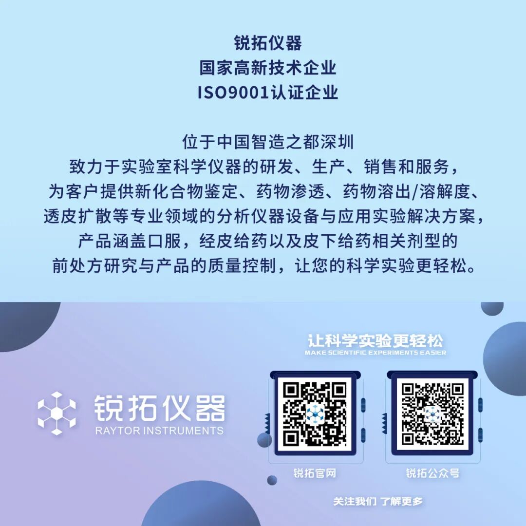 屆時(shí),銳拓儀器也將攜旗下產(chǎn)品流池法溶出系統(tǒng)RT7、透皮擴(kuò)散系統(tǒng)RT8以及微量溶出滲透分析系統(tǒng)NCE DP參會,非常期待與您的相遇,于此同時(shí)我們也相信唯有不斷提升自身實(shí)力,勇于創(chuàng)新,才能為我國的醫(yī)藥行業(yè)添磚加瓦,共同進(jìn)步!