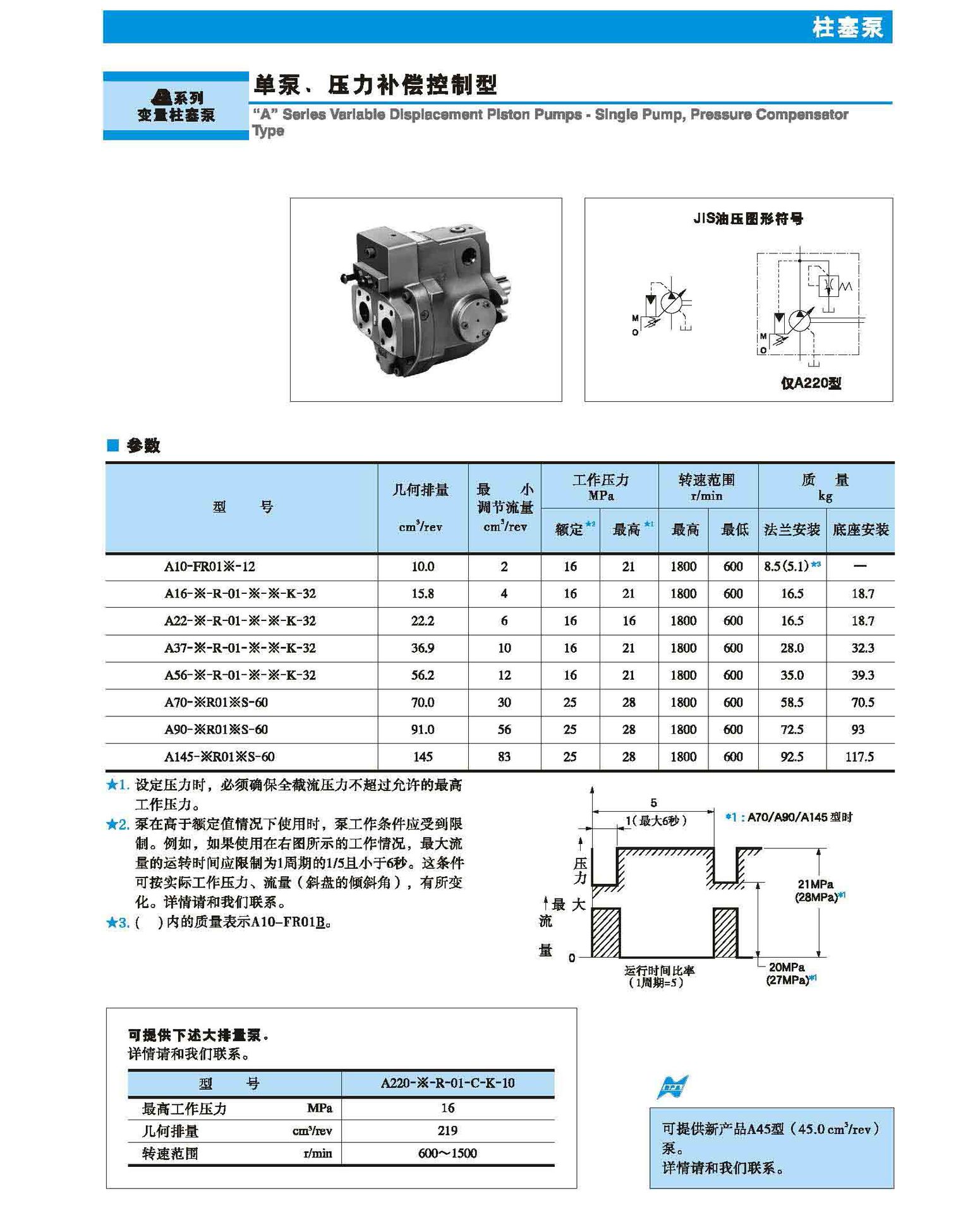 A系列變量柱塞泵 單泵、壓力補(bǔ)償控制型
