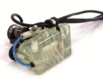 • 使用一個15 毫米芯片的水浸探頭,單晶輪式探頭分別提供1 MHz 至 10 MHz可供選擇,并提供了38毫米低壓輪胎(如圖所示)和 25mm 高壓輪胎。