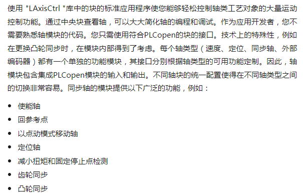 軸功能塊也被用作更高級別的技術軟件模塊的基礎,如多皮帶控制,這些模塊在工業(yè)在線支持中作為特定行業(yè)的標準應用程序發(fā)布。
